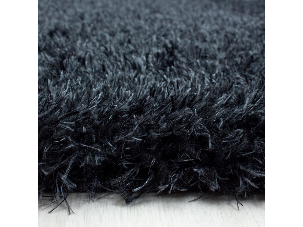 Černý kruhový koberec s velmi vysokým vlasem se barevně hodí k jakémukoliv nábytku. Pro svůj měkký povrch najde uplatnění především v ložnici u postele nebo v obývacím pokoji u pohovky. Fantastickou hebkost zajišťuje vlas typu shaggy vyrobený z polyesterového vlákna.