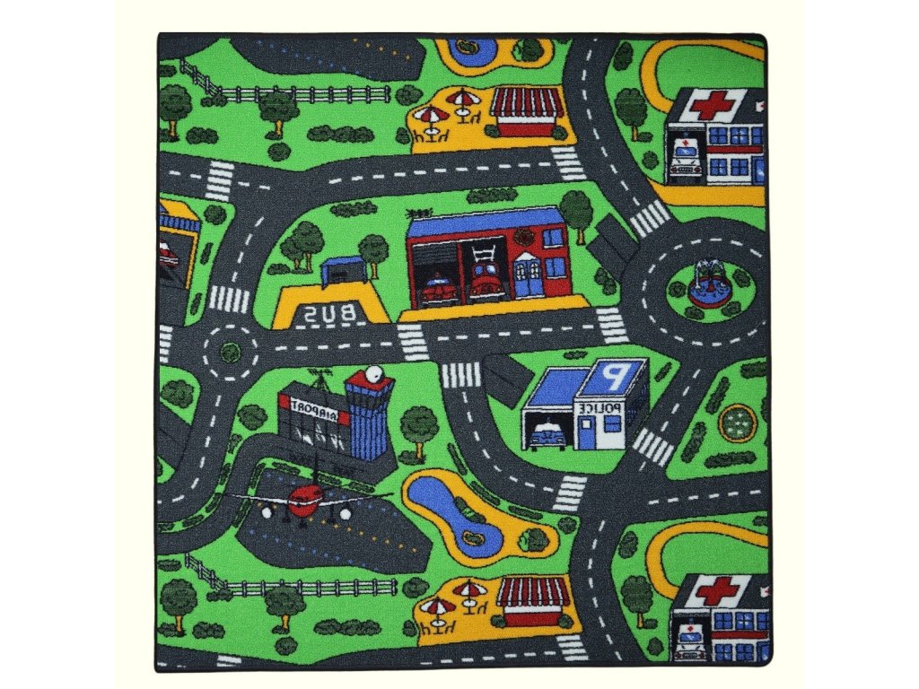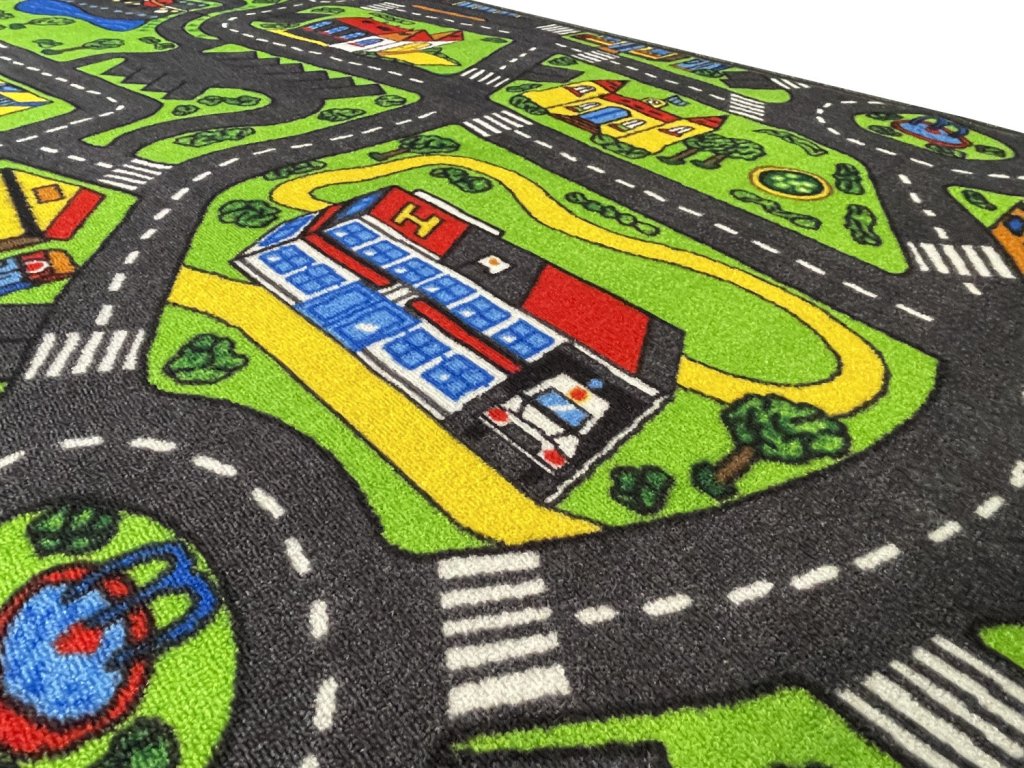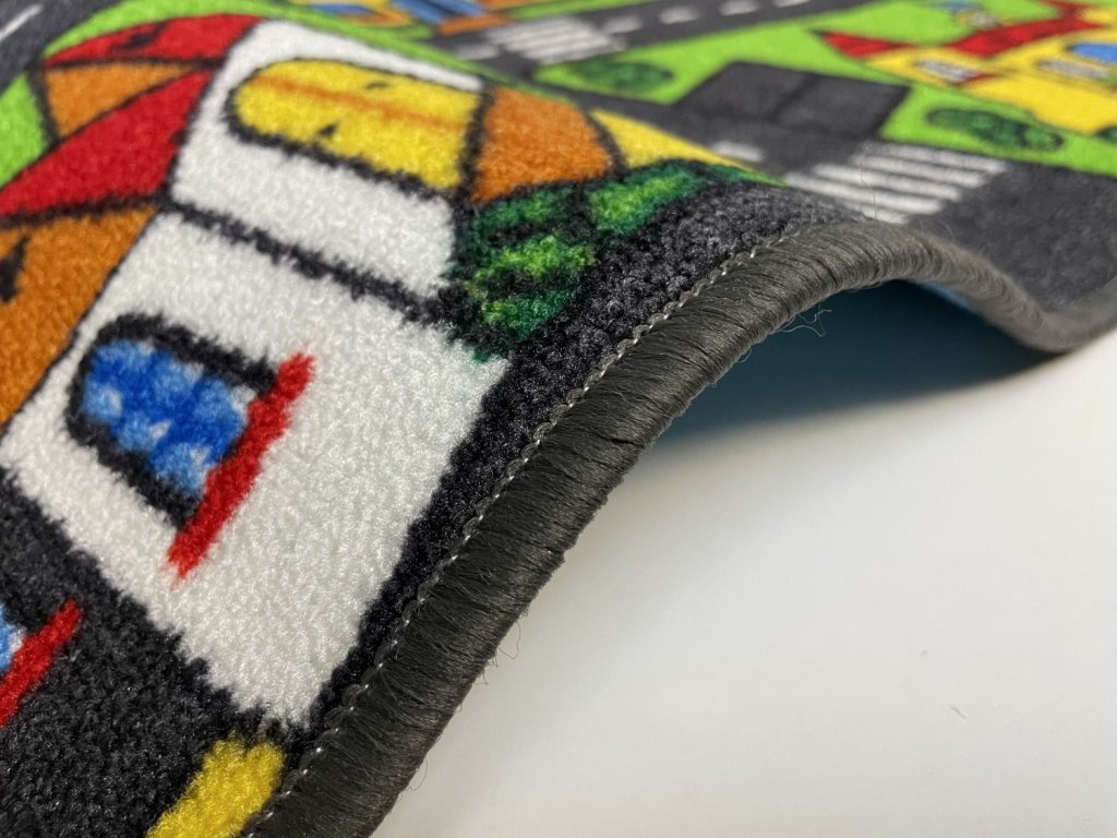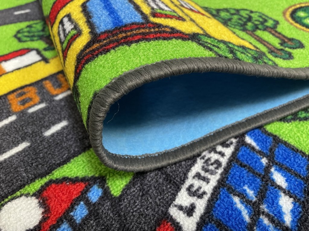 Dětský koberec z klasického smyčkového materiálu, lemovaný chemlonem s různými motivy je pěkným doplňkem pro děti. Dětské koberce tohoto typu se nejlépe čistí vlažnou vodou, měkkým kartáčkem s mýdlem nebo pracím práškem.Krátká videorecenze silnicových a letadlových koberců s expertem Markem: