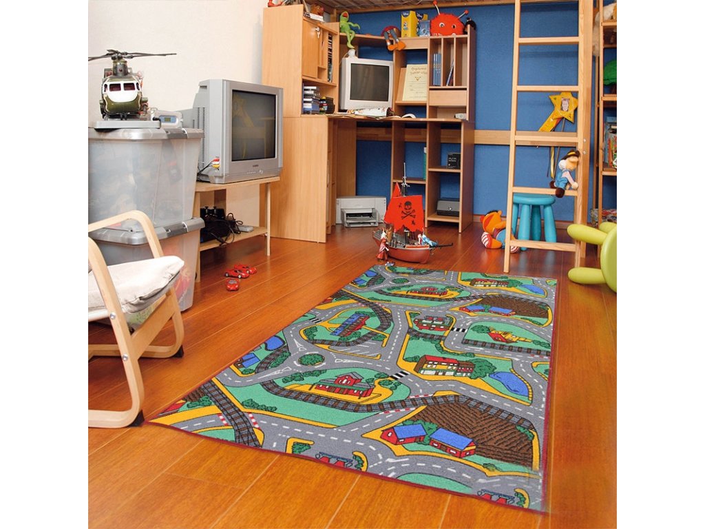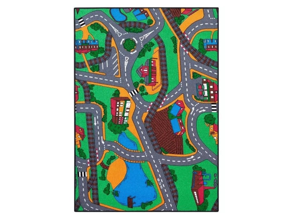 Co je ještě zábavnější než autíčka? Jasně, vláčky! A proto na tomto koberci najdete promyšlené silnice s křižovatkami a kruhovými objezdy, ale také koleje a nádraží. Tento koberec je určen do každého chlapeckého pokoje a můžeme Vám zaručit, že vašim dítkům udělá radost. Vy zase oceníte vysokou kvalitu a odolnost materiálu, ze kterého je koberec vyroben.