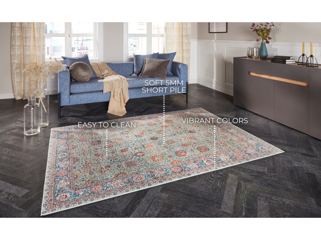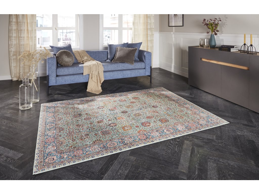 Přejete si stylový koberec do Vašeho obývacího pokoje? Do nefritova laděný kusový koberec Imagination 104211 z kolekce Elle Decoration se vyrábí z měkkého polyesterového vlákna. Tento orientální koberec vyniká nejen atraktivním vzorem, ale také praktickými vlastnostmi, mezi které patří bezvlasý povrch pro snadnou údržbu, obšití na všech stranách, či možnost pokládky na vytápěné podlahy. Hodí se např. do obývacích pokojů, ale využitelný je i v jiných interiérech.
