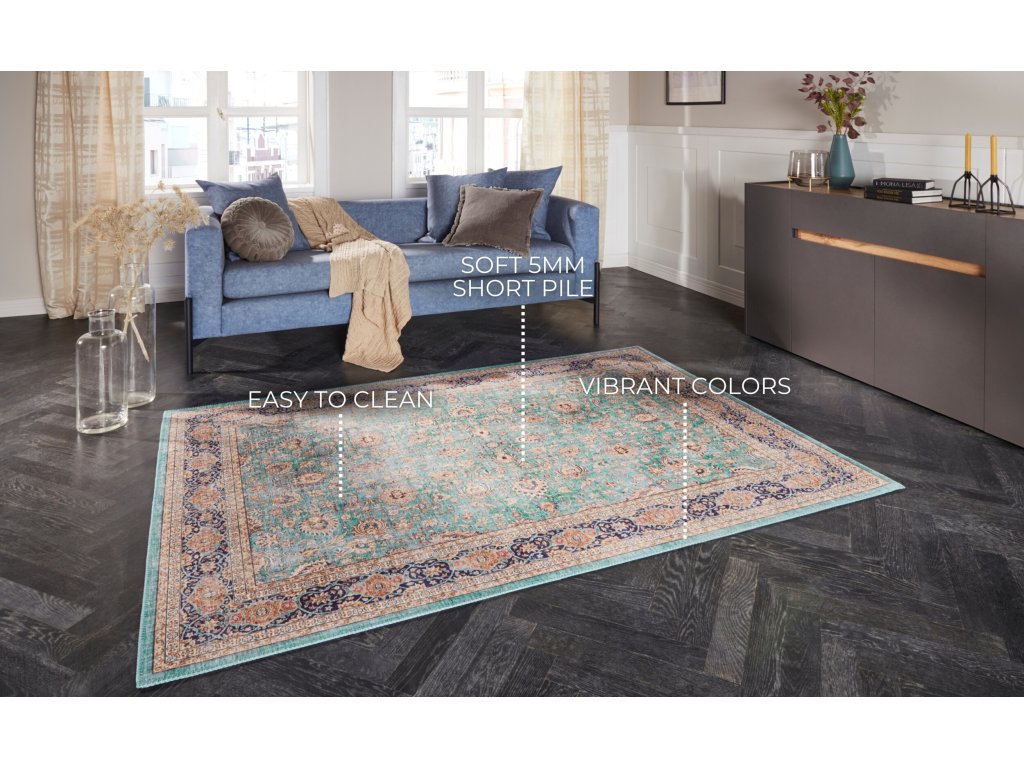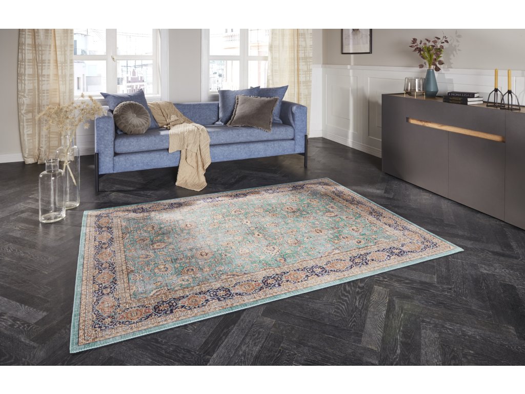 Přejete si stylový koberec, který bude krásně ladit do Vašeho obývacího pokoje? Do nefritova laděný kusový koberec Imagination 104217 z kolekce Elle Decoration se vyrábí z měkkého polyesterového vlákna. Tento orientální koberec vyniká nejen atraktivním vzorem, ale také praktickými vlastnostmi, mezi které patří bezvlasý pro snadnou údržbu, obšití na všech stranách, či možnost pokládky na vytápěné podlahy. Hodí se např. do obývacích pokojů, ale využitelný je i v jiných interiérech.