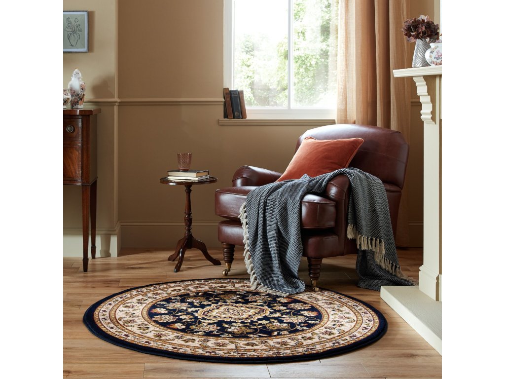 Kusový koberec Sincerity v tmavě modré barvě nabízíme i v kruhovém provedení. Mezi jeho přednosti patří pevnost a odolnost, protože je vyroben ze 100% polypropylenu. Další výhodou, kterou jistě oceníte, je rozumná cena. Orientální vzor v tmavé barvě ozvláštní každý interiér.