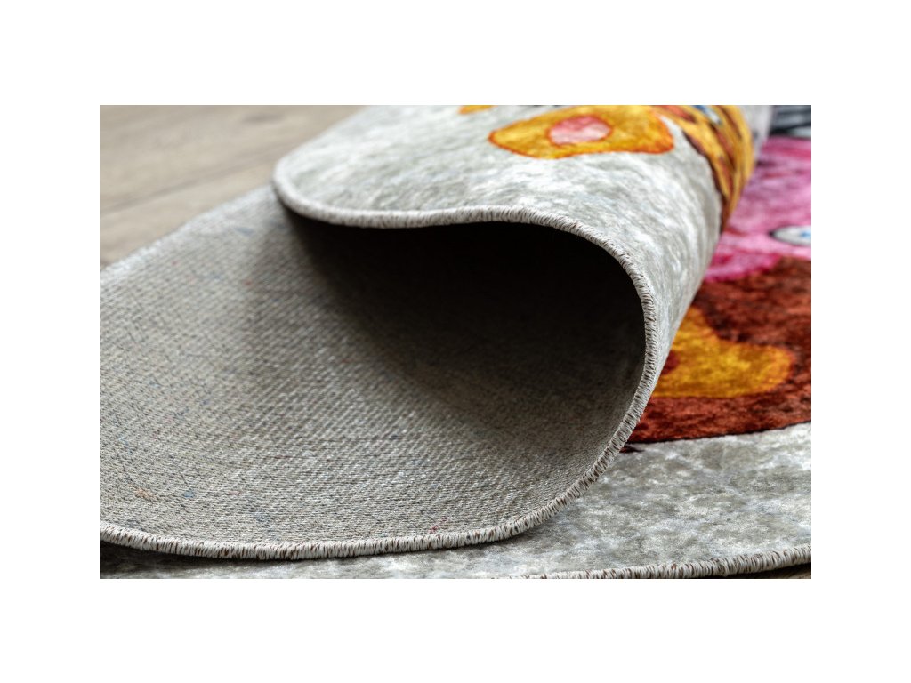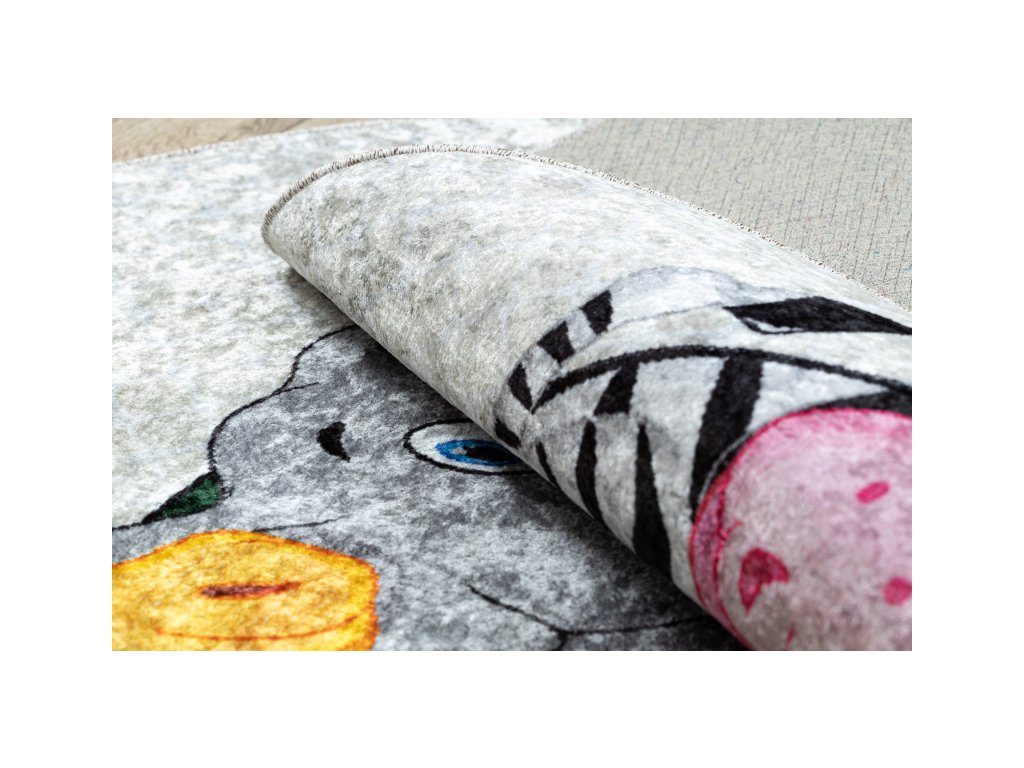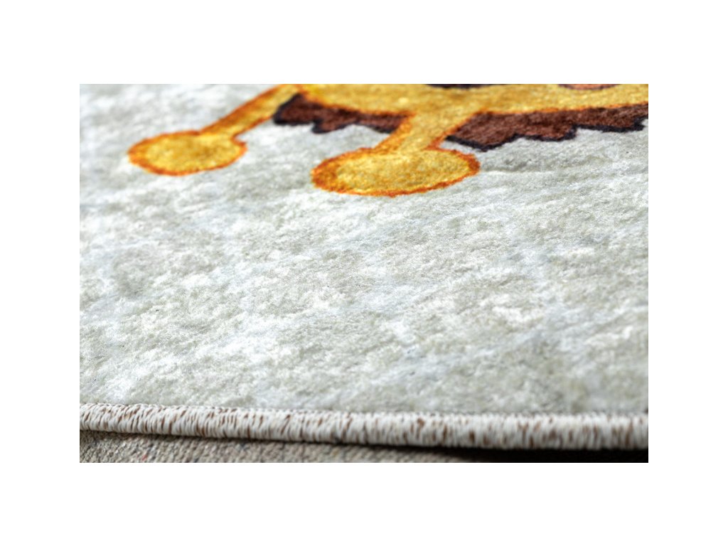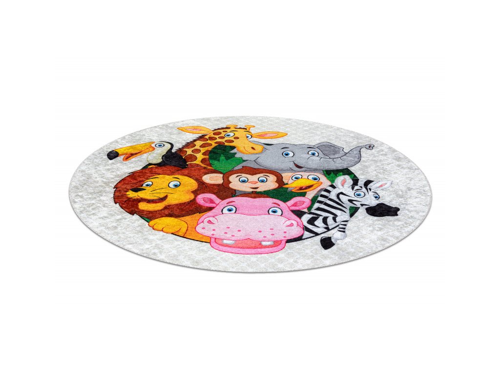 Krásný veselý dětský koberec s africkými zvířátky. Pestré barvy zpestří dětský pokojíček a vytvoří krásné a příjemné místo na hraní. Velkou výhodou toho koberce je absence vlasu, to pomůže k jednodušší údržbě a čistění, lze též prát v pračce do 30°C. Koberec je vyrobený ze 100% polyesteru. Bezpečnost proti smýkání koberce po podlaze zajišťuje pogumovaná spodní část, která ustojí i prudkým hrám.