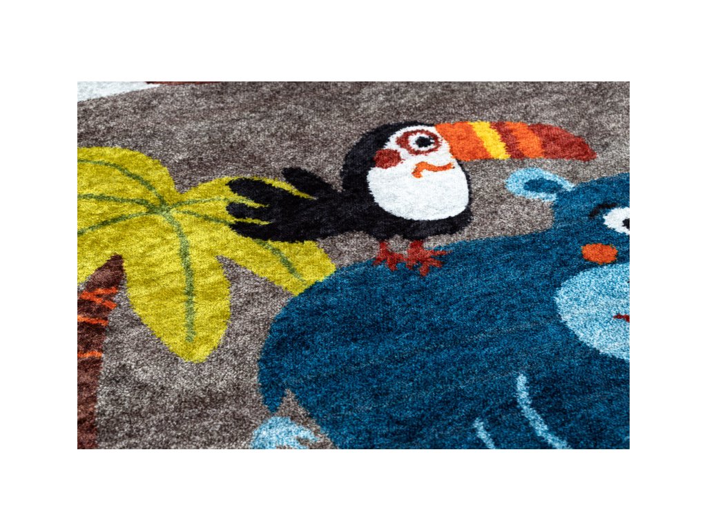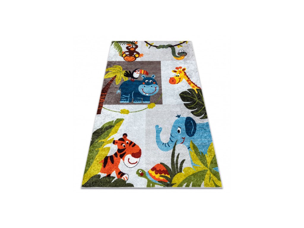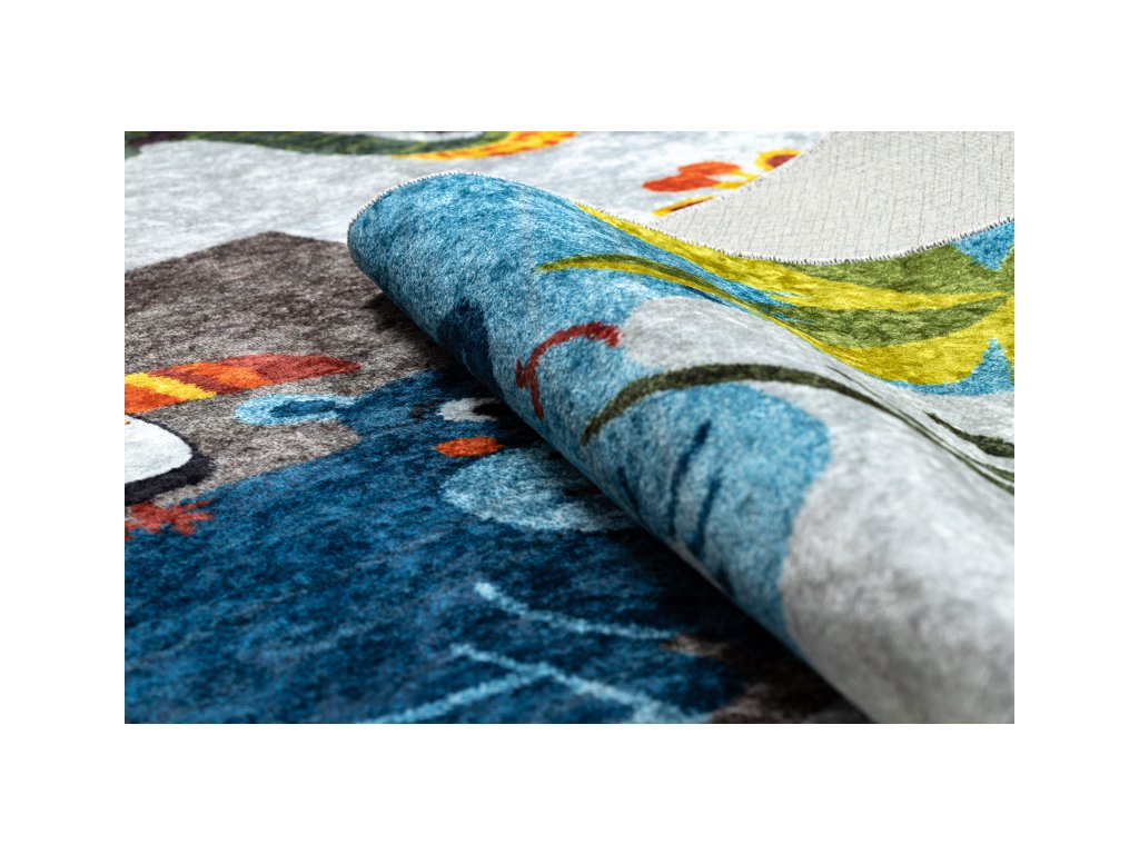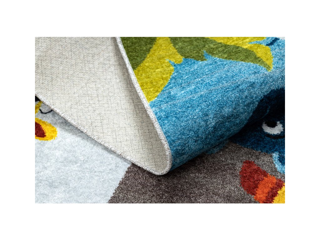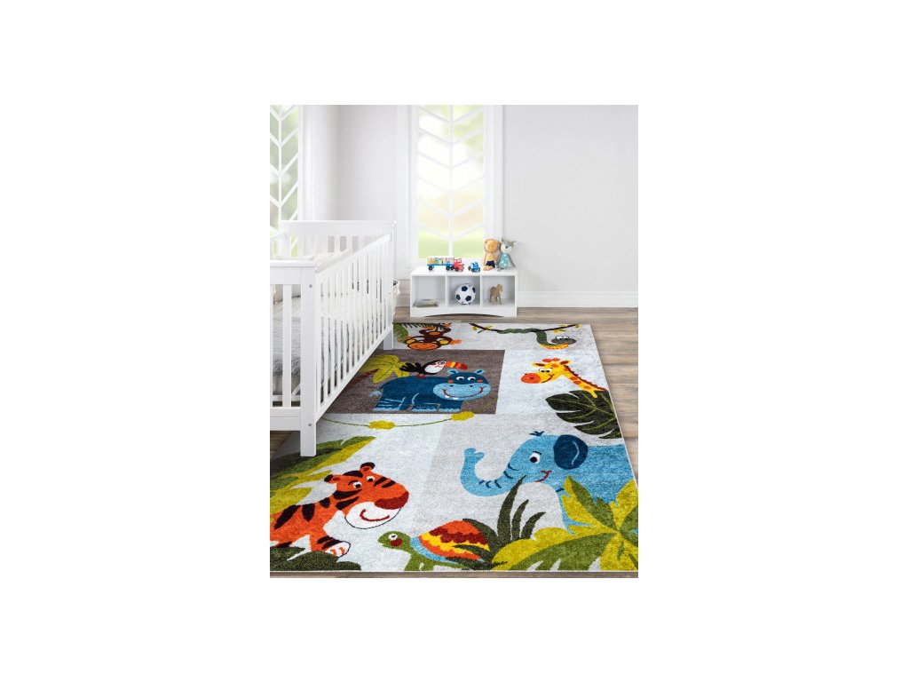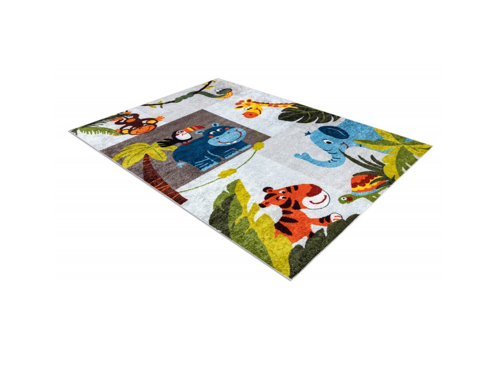 Pestrý a velmi praktický koberec Junior s malovanými zvířátky. Krásné barvy a materiál zaručí bezpečné a parádní místo na hraní, které se bude snadno udržovat a čistit. Koberce jsou vyrobeny ze 100% polyesteru. Tento materiál a možnost praní do 30°C v pračce zajišťuje nehromadění různých typů alergenů. Bezpečnost proti smýkání koberce po podlaze zajišťuje pogumovaná spodní část, která ustojí i prudkým hrám.