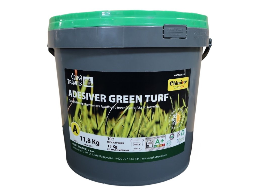 Toto lepidlo značky Český trávník je určené pro lepení umělých trávníků na pevné povrchy, jako je dlažba, dřevo apod. Nejčastěji se používá pro podlepování spojů. Hodí se pro vnitřní i venkovní použití, nevadí mu déšť, mráz, ani teplo. Obě složky lepidla se vzájemně promíchají, a poté se rozetřou rovnoměrně pomocí stěrky. Lepidlo má zelenou barvu a po aplikaci s ním lze hýbat cca hodinu. Doba vytvrdnutí je asi 24-36 hodin, podle aktuálních povětrnostních podmínek. Lepidlem se obvykle vytváří cca 40 cm široké pruhy po okrajích travního koberce a u spojů. Spotřeba je cca 400-500 g na metr pruhu dle savosti podkladu.