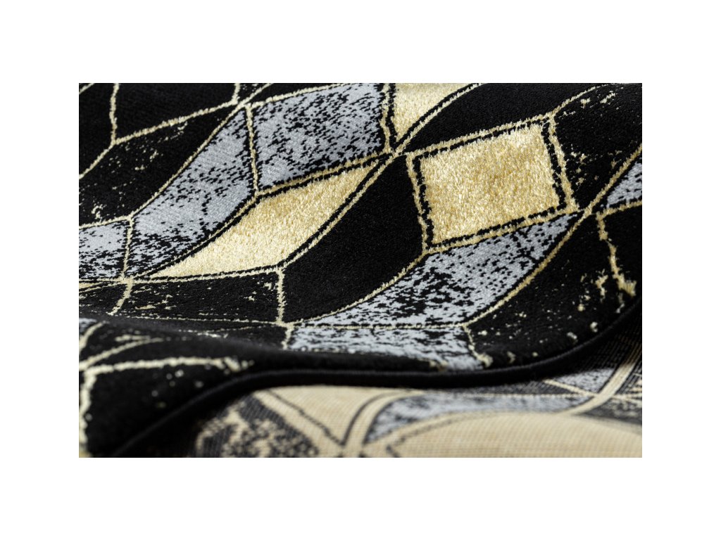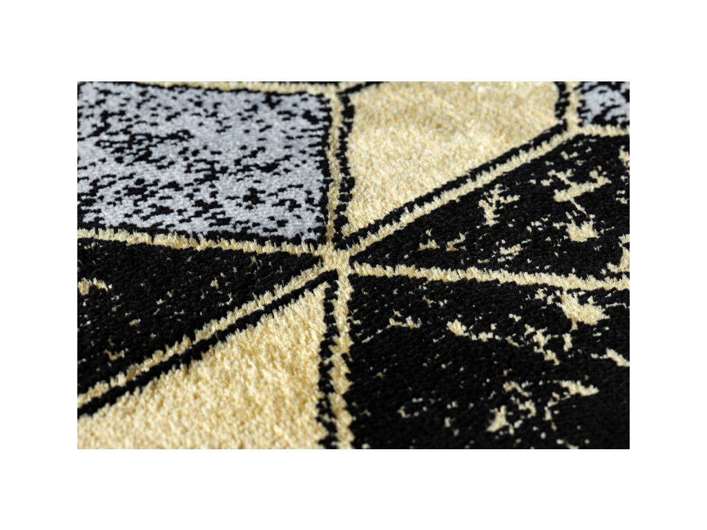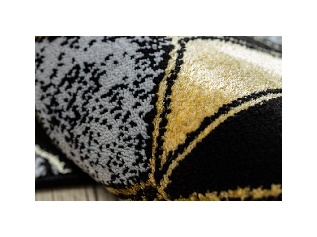 Běhoun Gloss snoubí kombinaci moderní elegance s geometrickou fantazii. Tento běhoun si zamilují příznivci stylu glamour a art deco. Jeho kombinace výrazných barev se zlatým vzorem vytvoří estetický prvek místnosti. Díky použitému materiálu je běhoun stálý a odolný. Vlákna vlasů jsou tvořeny do 3D efektu, který umocňuje moderní vzhled.
