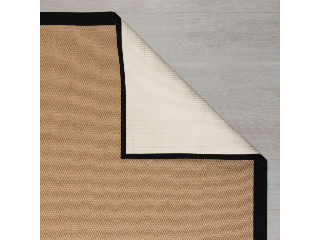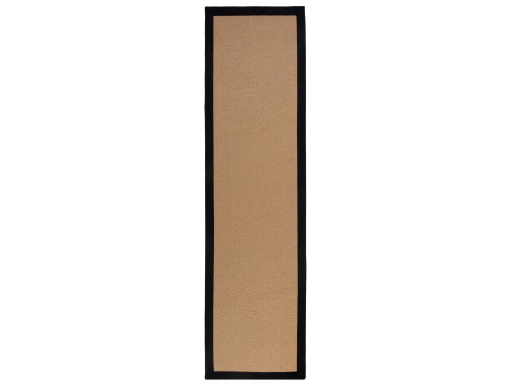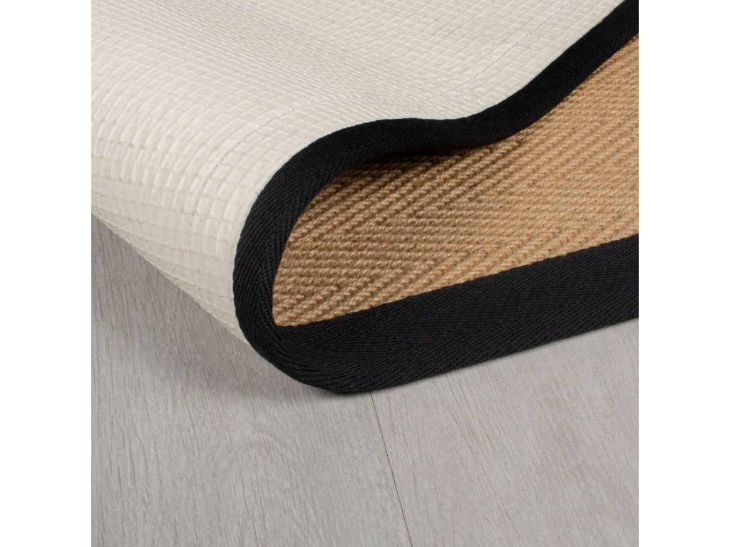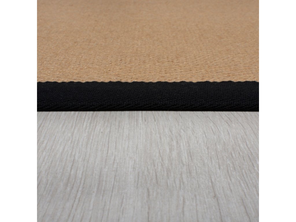 Minimalistický koberec s béžovým středem a černým lemováním dodá eleganci každé domácnosti, ať už ho položíte do obývacího pokoje nebo do chodby. Vyrábí se ze směsi odolné juty a hebkého polyesteru a černé lemování je z bavlny. Má antistatickou úpravu a můžete ho položit i na podlahové topení.