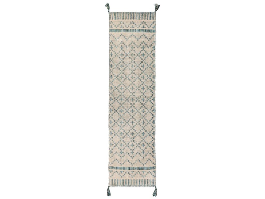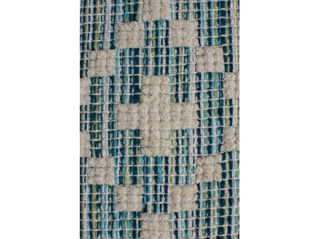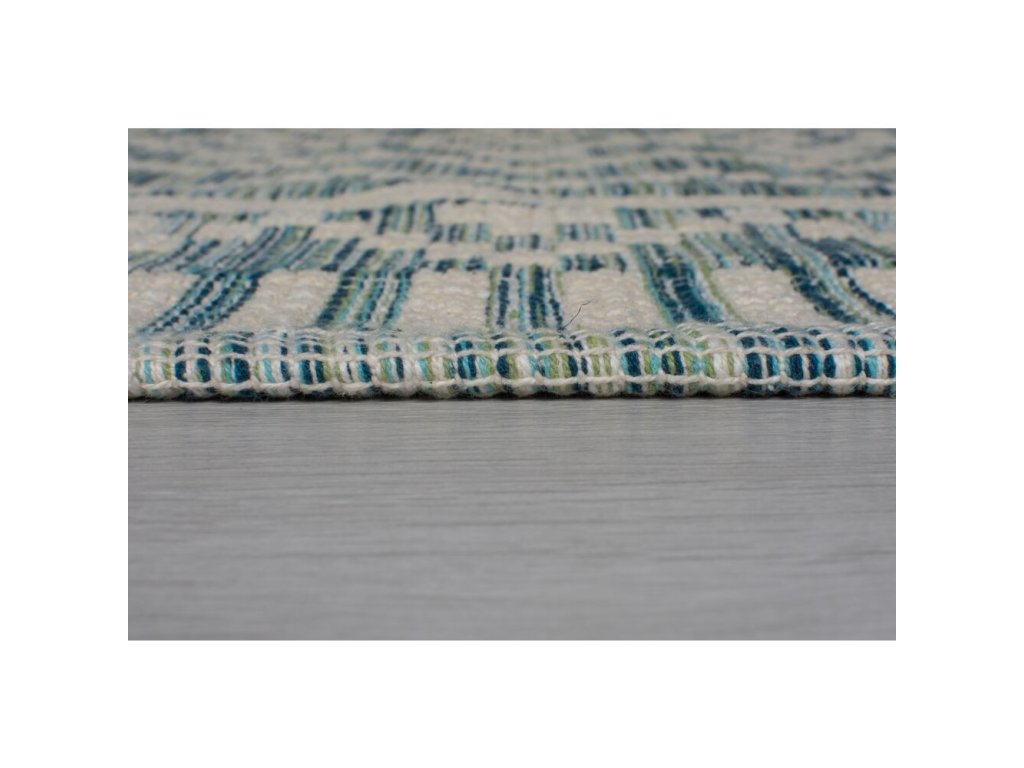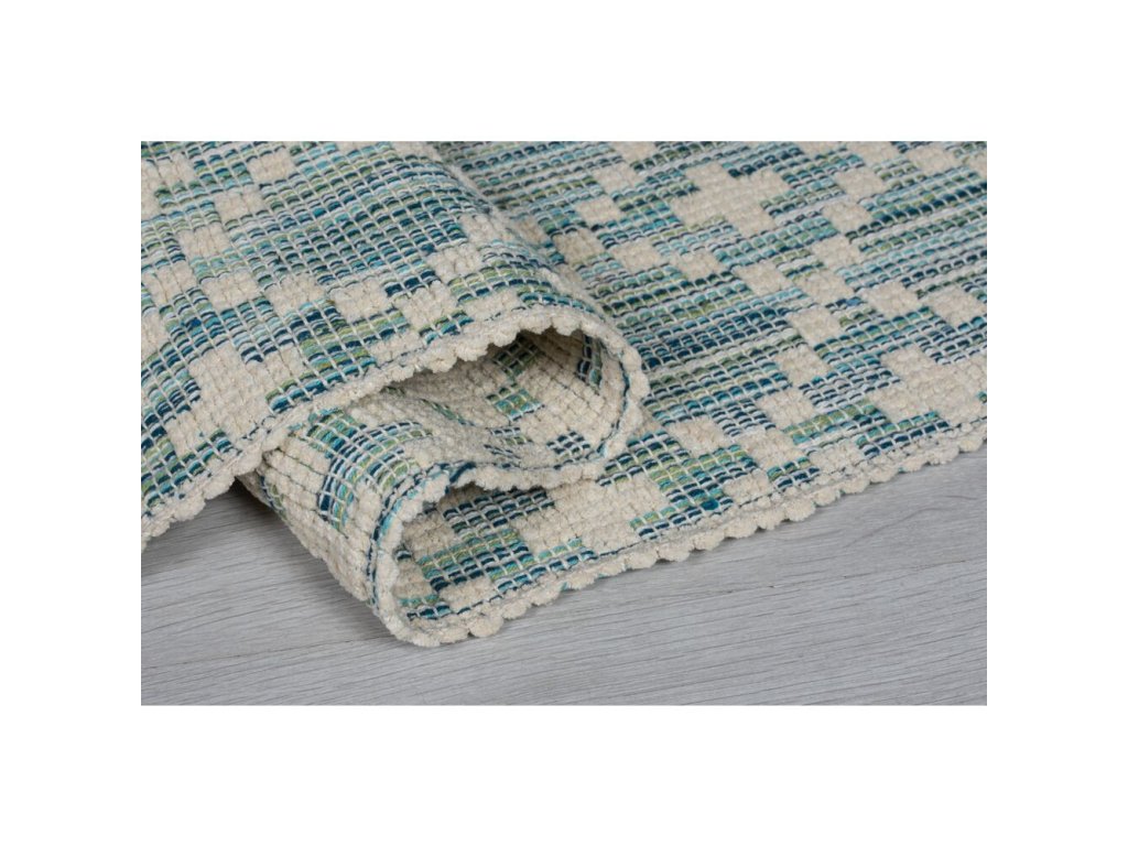 Moderní běhoun kombinující slonovinovou a tyrkysovou barvu do Vaší domácnosti vnese klidnou atmosféru, přičemž na každé straně dominuje jiná barva. Vyrábí se z recyklované bavlny a polyesteru, a proto je odolný a příjemný na došlap. Mezi jeho přednosti patří snadná údržba nebo antistatická úprava. Skvělá volba do předsíně, na terasu nebo před francouzské okno.