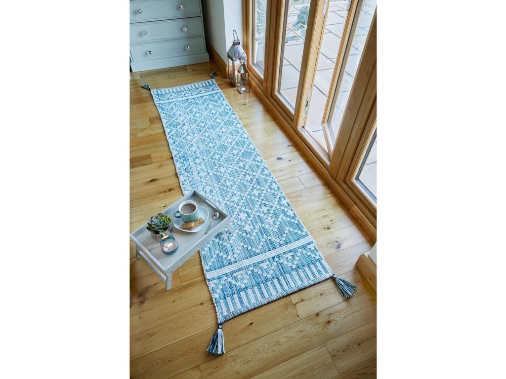 Ručně vyráběné běhouny z kolekce LEELA od britské značky Flair Rugs jsou skvělou volbou do chodeb či předsíní. Jedná se o oboustranné běhouny s obšitím po celém obvodu a hravými třásněmi. Vyrábí se ze směsi recyklovaných materiálů - bavlny (98 %) a polyesteru (2 %). Proto jsou odolné a můžete je položit i do zatěžovanějších místností. Mají krátký smyčkový vlas (7 mm), který je snadný na údržbu. Můžete je opatrně vysávat a v případě polití usušit čistým hadříkem. Nevystavujte běhouny dlouhodobě přímému slunečnímu záření, aby nedošlo k vyblednutí barev. Koberce pravidelně otáčejte, abyste zajistili rovnoměrné opotřebení.