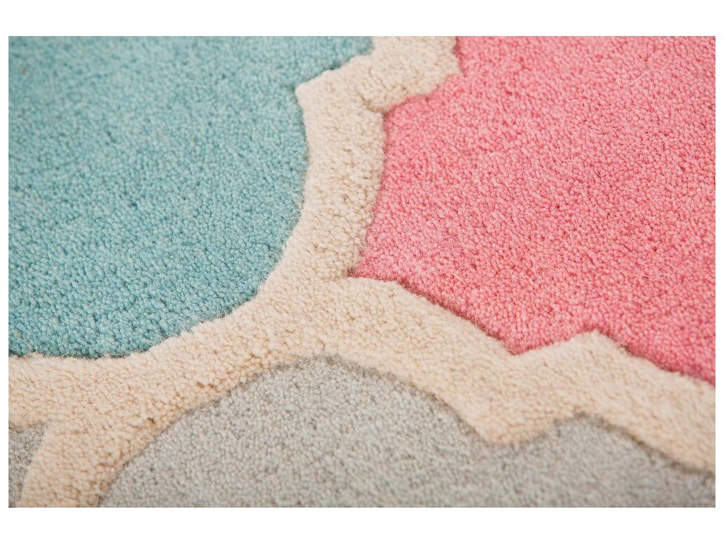 Veselý běhoun kombinující různé odstíny růžové a modré barvy bude slušet každé chodbě. Hodí se i do obývacího pokoje k pohovce nebo do ložnice k posteli, protože je příjemný na došlap a má hřejivý povrch. Vyrábí se totiž ze 100% vlny a má komfortní střižený vlas.