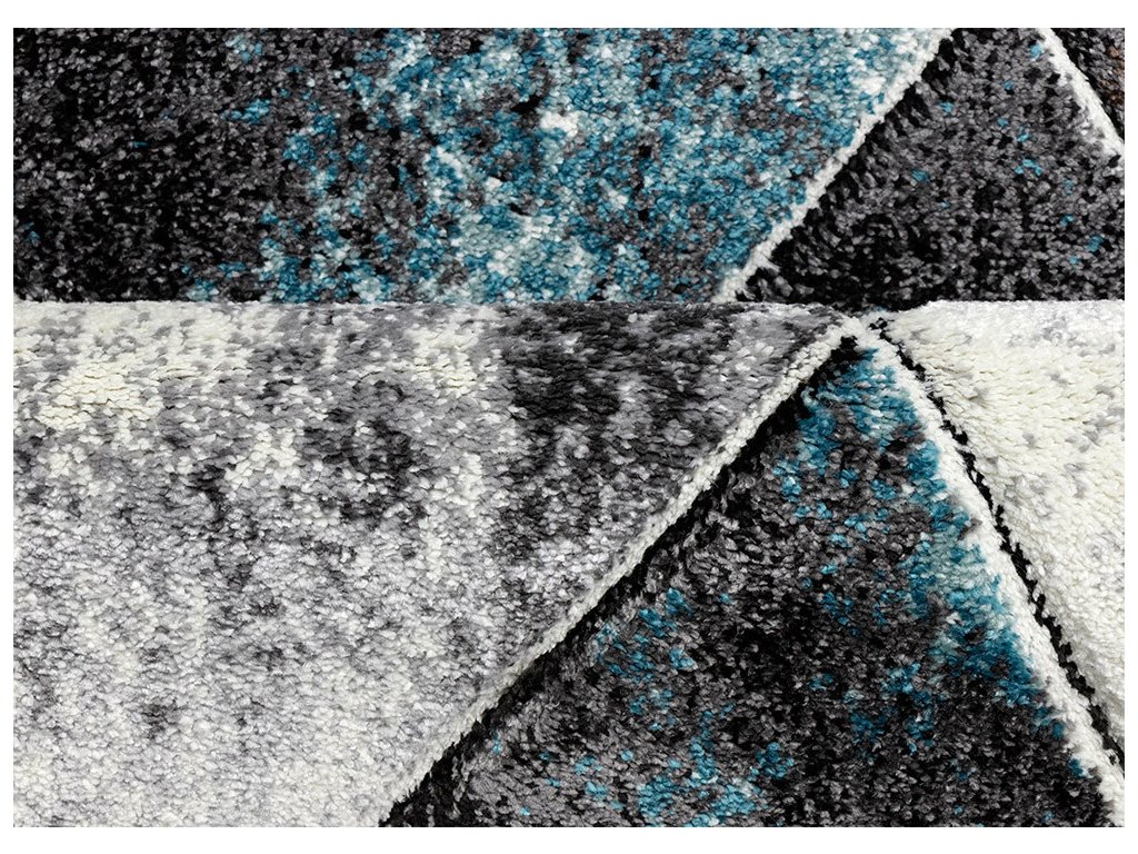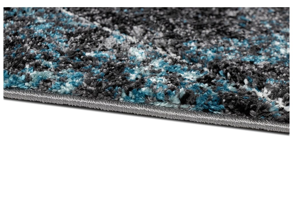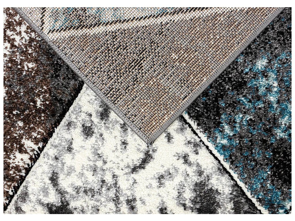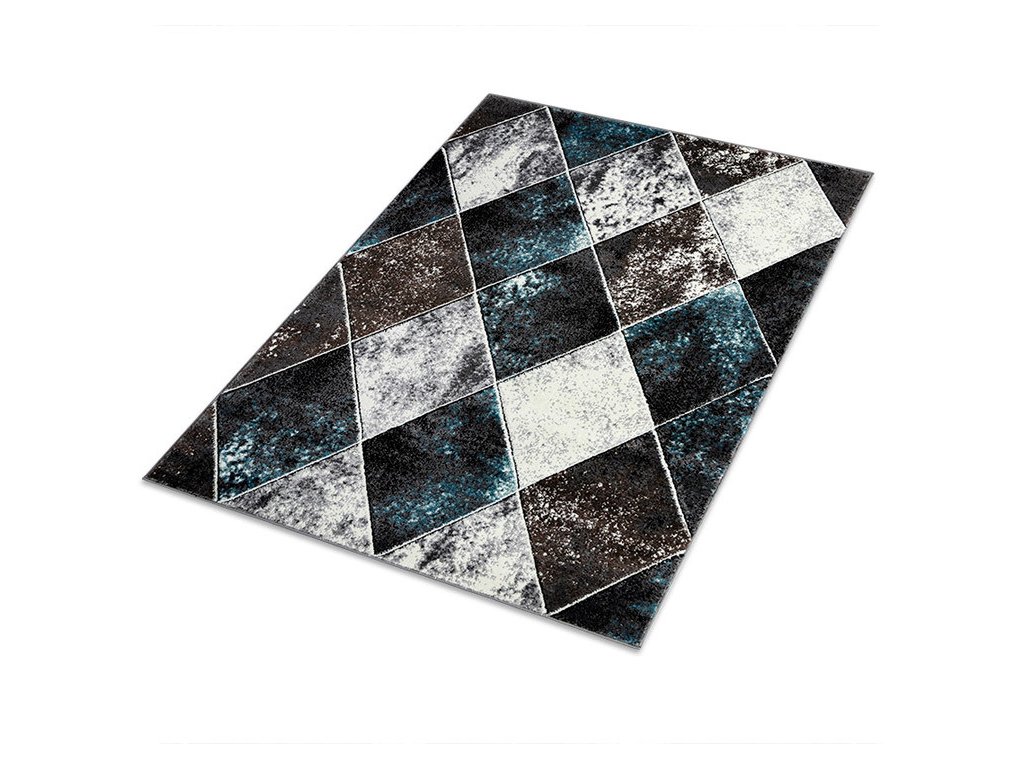 Atraktivní koberec posetý modrými, bílými, hnědými a šedými geometrickými tvary udělá v každé domácnosti parádu. Je vyroben metodou heatset ze 100% polypropylenu a proto je odolný a komfortní. Nízký vlas je snadný na údržbu. Udělá radost např. v obývacím pokoji,nebo v ložnici.