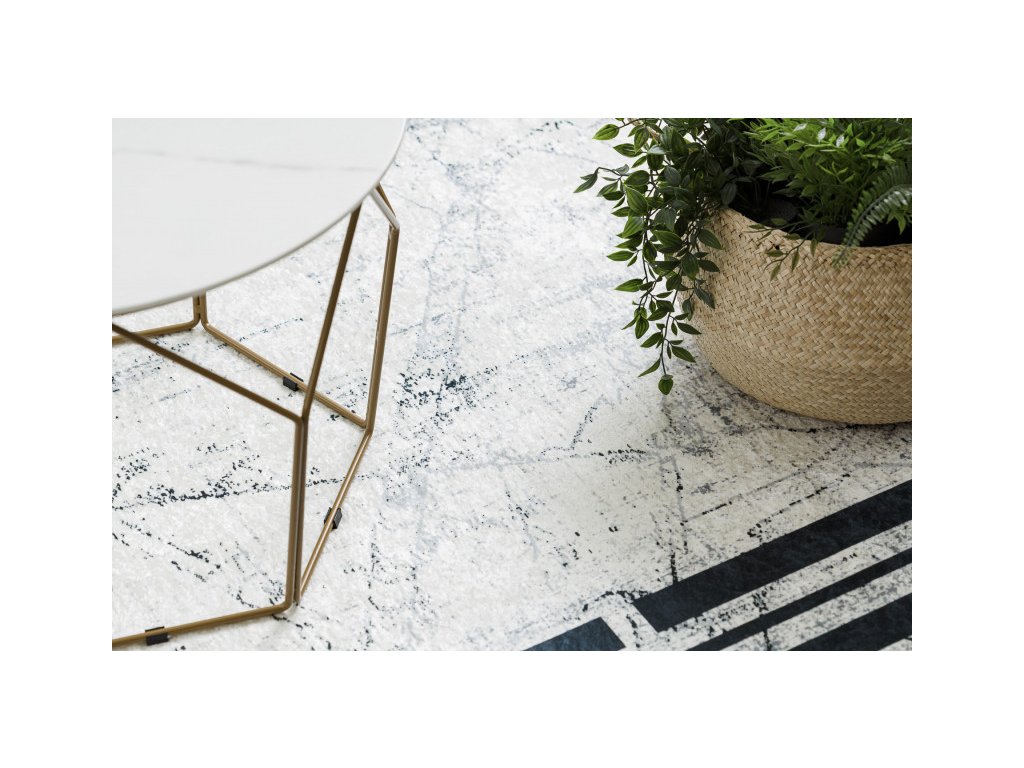 Koberec Andre Frame 1023 do stylu staré světlé mramorové podlahy s ozdobným rámováním. Má velmi nízký střižený vlas. Jedná se o koberec s velmi jednoduchou údržbou. Pro čištění lze využít praní při teplotě nepřesahující 30°C. Spodní strana je opatřena protiskluzovou gumou, která zajišťuje neklouzání koberce po podlaze. Hodí se i do prostor s podlahovým vytápěním. Uplatnění najde v obývacím pokoji, v kuchyni, v koupelně i na chodbě či v hale.