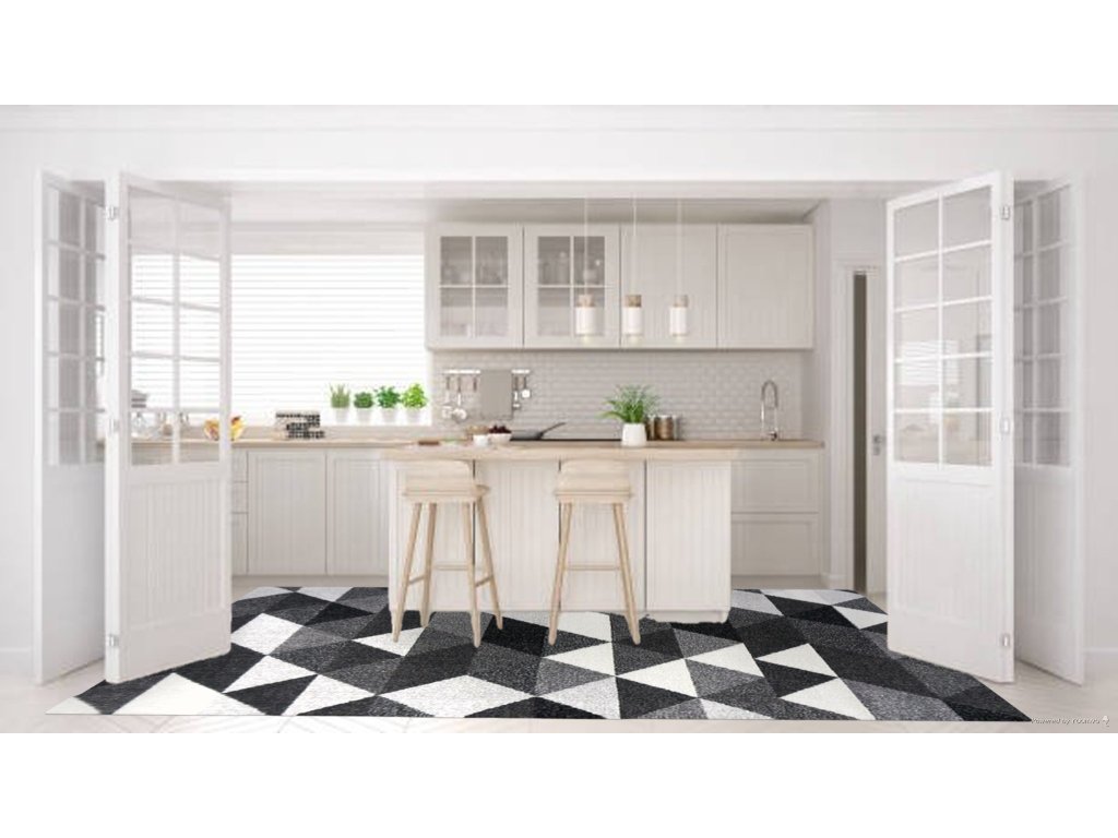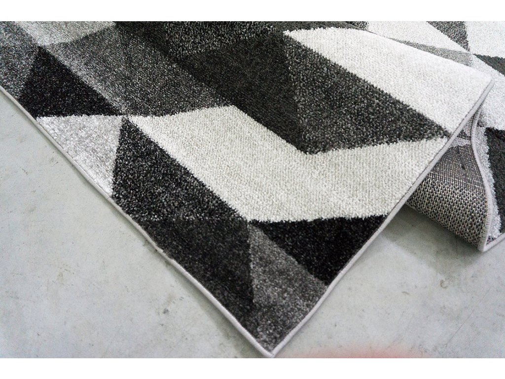 Dozdobte si svůj interiér pomocí tohoto parádního kusového koberce. Zdobený je malými trojúhelníčky v různých odstínech šedé barvy. Díky svému barevnému provedení bude skvělým doplňkem každé moderní domácnosti.