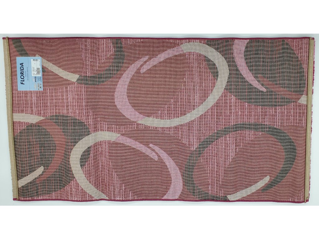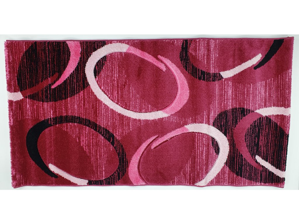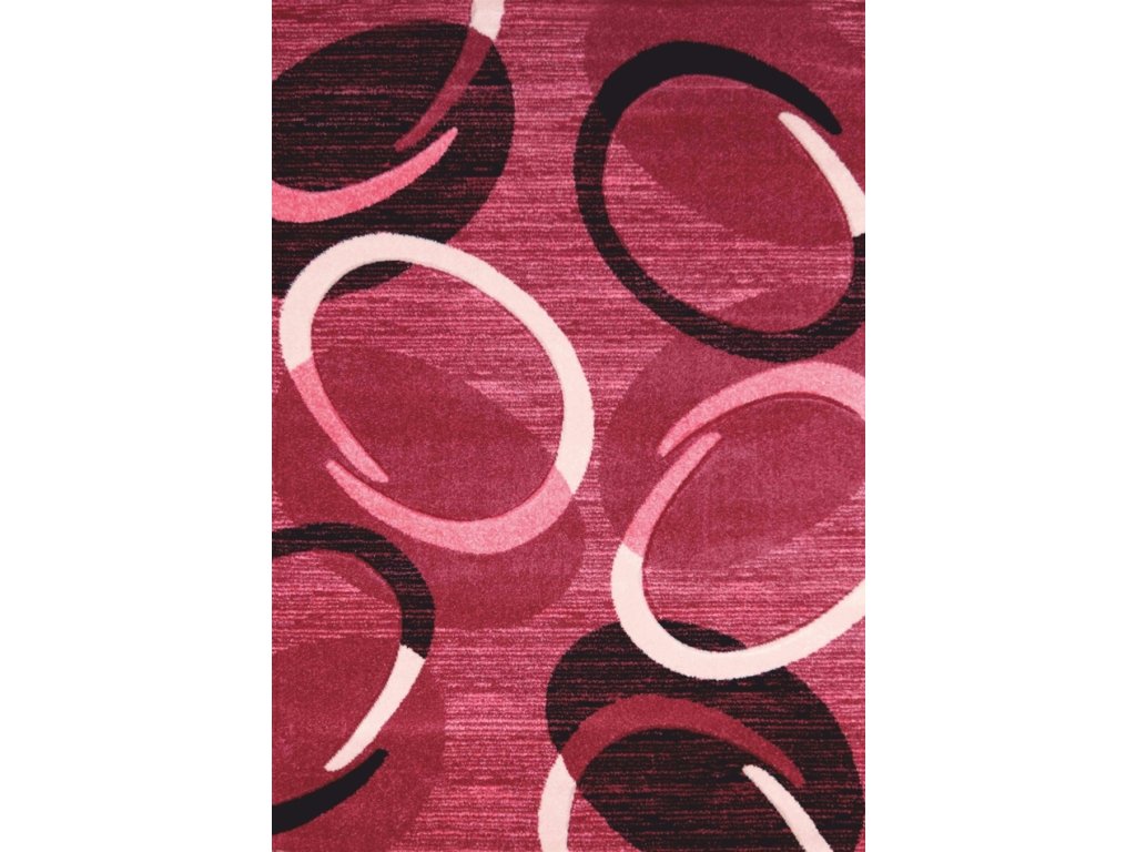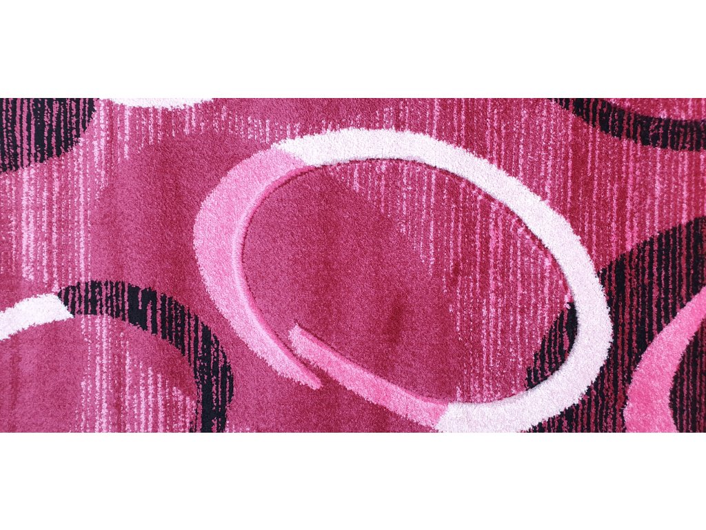 Kusový koberec Floria fuchsia z odolného polypropylenu heatset frizé v kombinaci světle a tmavě růžové barvy se vzory koleček a proužků. Jedná se o výrazný koberec vhodný do moderního interiéru.