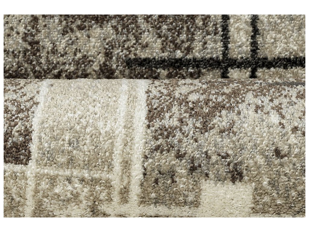 Béžový koberec doplněný hnědou a krémovou barvou se zajímavým abstraktním motivem. Můžete se z něj těšit v jakékoliv obytné místnosti, protože ho lze položit i na podlahové topení a je vcelku odolný. Nejlépe se však bude vyjímat v ložnici nebo obývacím pokoji, kde si Vaše chodidla užijí jeho příjemný a hřejivý povrch.