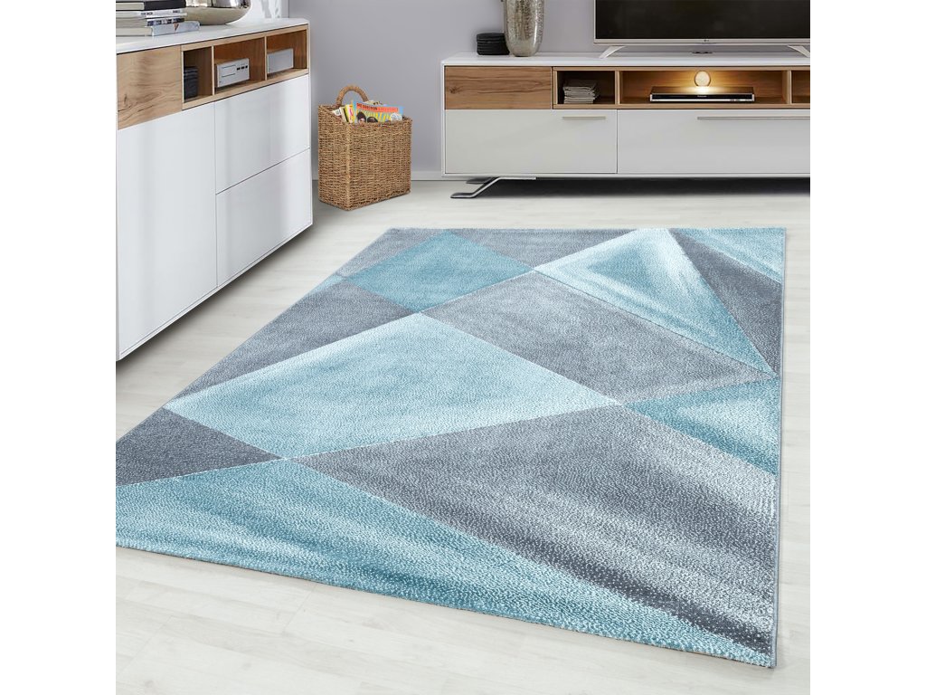 Kusový koberec s geometrickým vzorem v šedé a modré barvě, který je určený primárně do obývacích pokojů. To ale neznamená, že by se koberec nemohl vyjímat i jinde v interiéru. Tento koberec se vyrábí přímo v Turecku ze 100% frisé polypropylenu a nabízí celou řadu užitečných vlastností. Tou nejdůležitější je nejspíše snadná údržba, která je zaručena díky krátkému vlasu. Mezi další přednosti pak patří antistatický povrch a obšití na delších stranách.