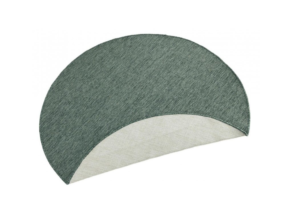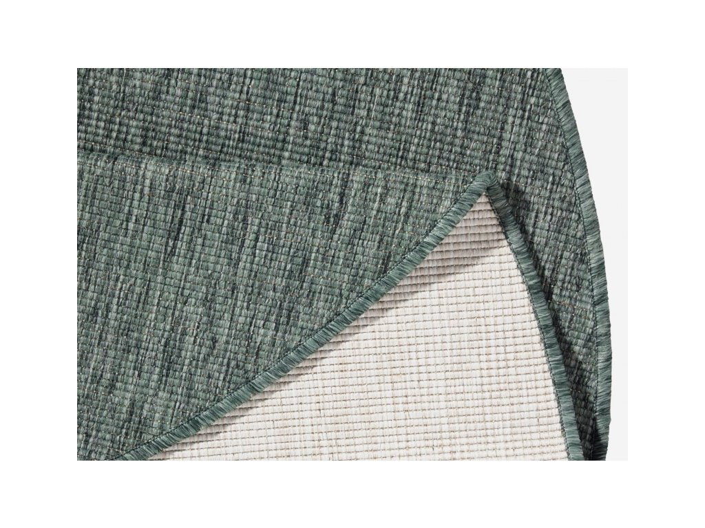 Moderní kusový koberec v jednoduchém stylu. Koberec je oboustranný, z jedné strany je stylově zelený a z druhé strany je světle krémový. Koberec z kolekce Twin-Wendeteppiche německé značky Hanse Home můžete kromě interiéru, také použít jako doplněk na venkovní terasu.