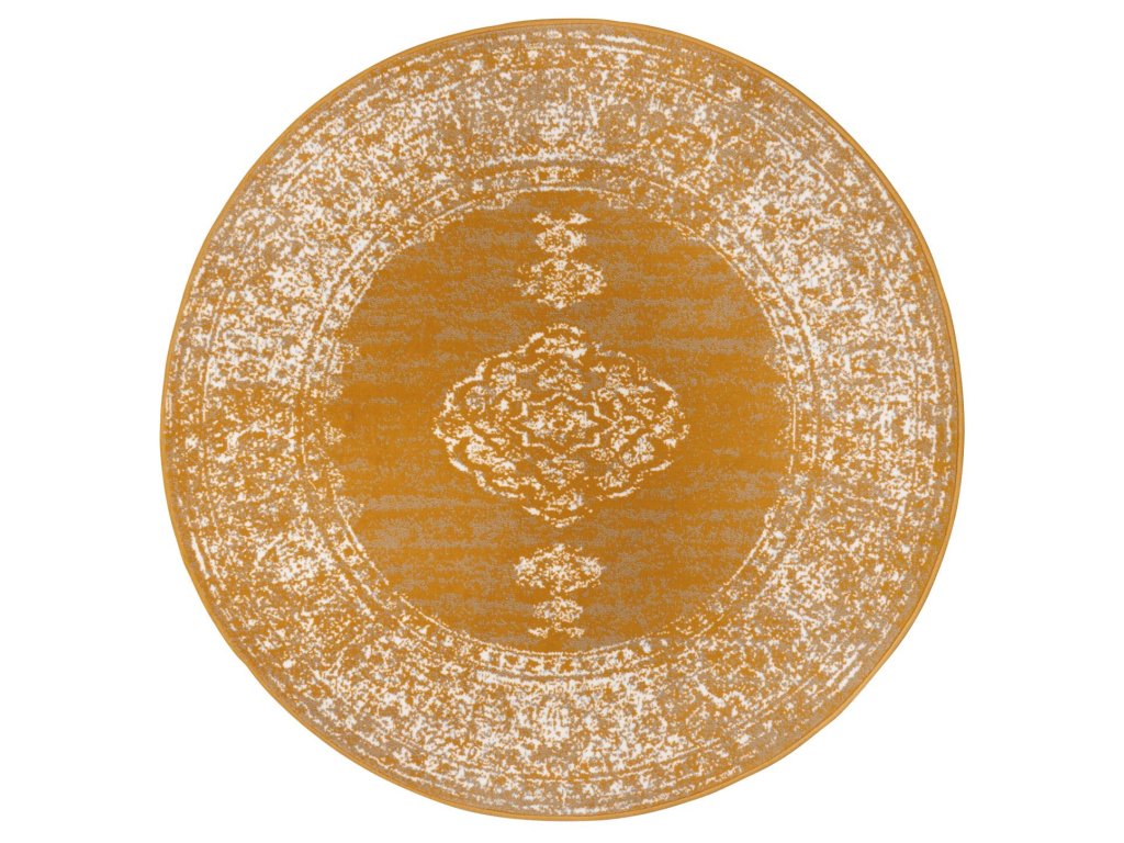 Hořčičně žlutý kruhový koberec do Vaší domácnosti vnese hřejivou atmosféru. Může se pyšnit orientálním motivem ve vintage stylu, takže to vypadá, jako by byl koberec odřený a ošoupaný. Tento povedený kousek se skvěle hodí zejména do ložnice nebo obývacího pokoje, protože je měkký a příjemný na dotek i došlap.