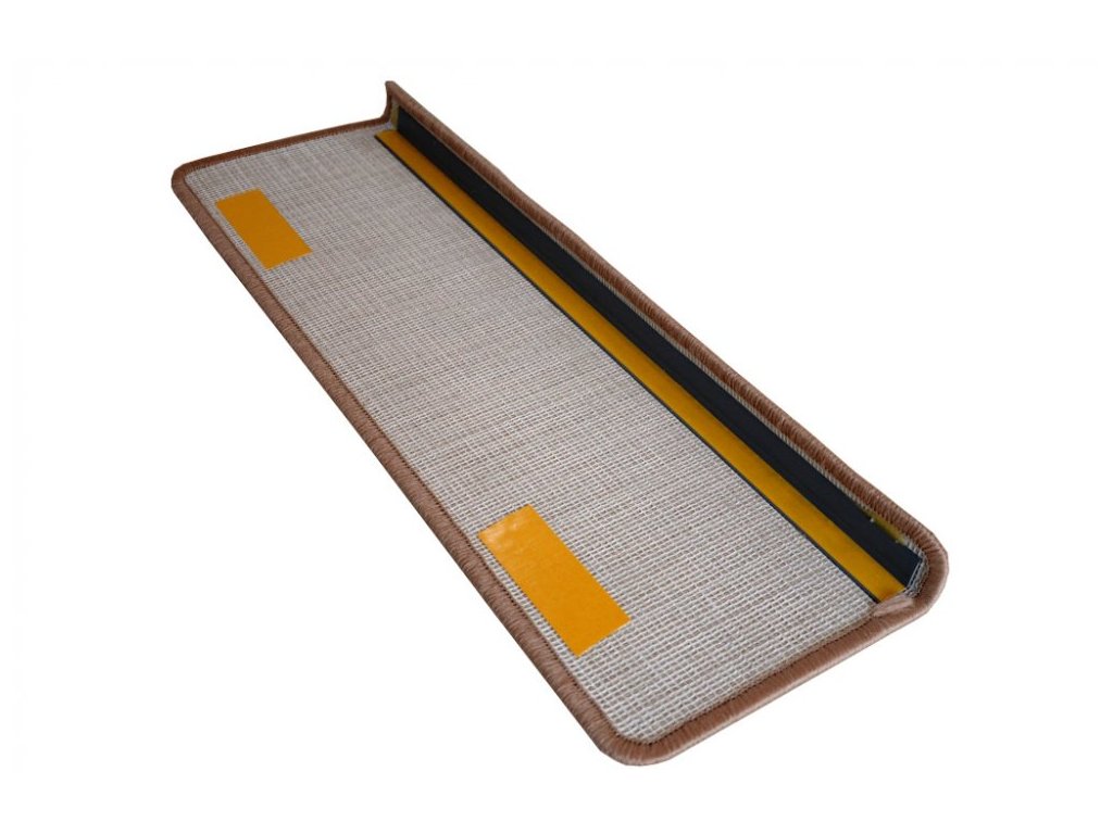 Koberce se hodí do všech typů interiérů a na všechny povrchy. Pro přichycení ke schodu slouží lepící páska, která je již z výroby připevněna na spodní stranu koberečku.