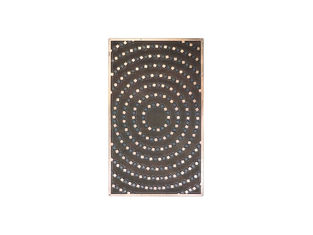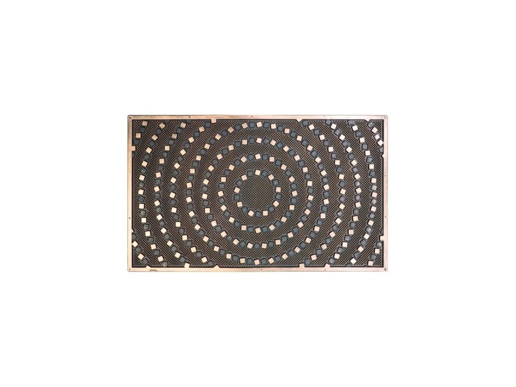 Velmi zajímavá a elegantní rohožka s designem imitující spirálu se zlatým povrchem. Rohožka zcela tvořena gumou. Údržba je velmi snadná, rohožku snadno vyklepete a omyjete. Vhodná i do venkovního prostředí.